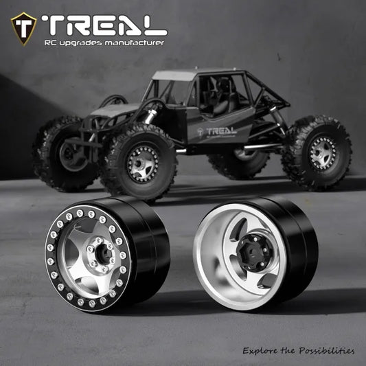 TREAL 1.9" CNC Machined Retro-Style Vintage Wagon Beadlock Wheels for 1:10 Scale RC Crawlers-VTE20